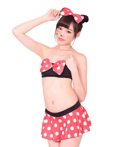 水玉リボンと水玉スカートがとってもキュート♪大人気キャラクターコスチュームをビキニとして着れちゃう!ドットリボンビーチビキニが登場♪カチューシャとブラのフロントリボン、そしてスカートは定番の赤×白ドットカラーでキュートに演出♪スカートは少しミニ丈ですが、パンツもセットになっているので安心です◎水着として着用も可能なため、通常のビキニとしても使えるおすすめコスチュームになっています。セット内容:ブラジャー、パンツ(スカート付き)、カチューシャ※水着として入水も可能です。サイズ:Mサイズ B78-88cm W58-70 H:87-95cm