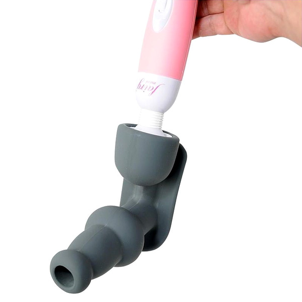 お手持ちのデンマにアクセントを加えるアタッチメント ユニークな形が特徴的な全5種類ある電動マッサージャー用アタッチメント「Oh!Pon!」!こちらはアナルプラグ型のアタッチメントとなっています。本体は割と大きめになっていて、奥に行くほど太くなり、初心者は先端まで上級者は奥までと段階を踏んで挑戦頂けます。またアナルプラグでは珍しく中が空洞となっていて、挿入しながらローションなどの液体を注入したりできちゃいます。高級シリコン製で肌触りが良く、安心安全です。ヘッド径Φ4.5cmの電マが装着可能です。