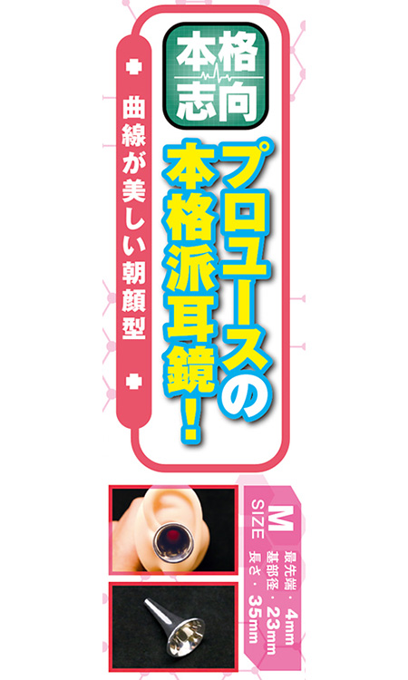 あなたの願望を叶えるオトナのアイテム!プロユースの本格派耳鏡!曲線が美しい朝顔型。※この商品は医療機器ではありません。本体サイズ:最先端:0.4cm、基部径:2.3cm、長さ:3.5cmパッケージサイズ:10.3×6.3×3.0cm