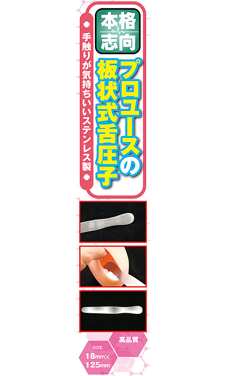 あなたの願望を叶えるオトナのアイテム!プロユースの板状式舌圧子!手触りが気持ちいいステンレス製。※この商品は医療機器ではありません。本体サイズ:1.8×12.5cmパッケージサイズ:16.0×6.0×3.0cm