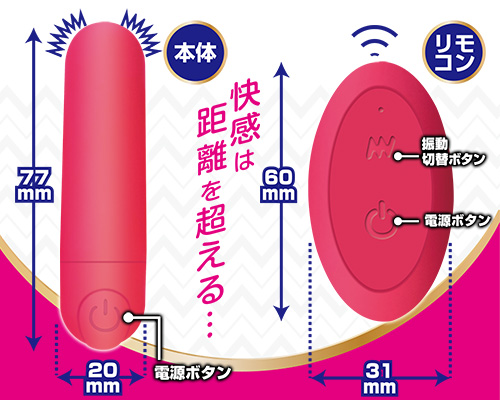 遠隔刺激で、快感ひとっ飛び!リモコンローター「リモートイン」が、2色でパッケージが全く異なるデザインで登場。強力な10段階振動と10Mの飛距離で、ラクラクリモート操作。お外でも、お家でも場所を選ばずプレイが楽しめる。リモコンは小ぶりなので、手に馴染んで使いやすい。本体のローターは防水仕様なので、メンテナンスもラクラク。これが新しい愛のカタチ・・・リモートインで、距離を保って刺激し合おう。本体サイズ:ローター7.7×Φ2.0cm、リモコン6.0×3.1cm電池:USB充電式パッケージサイズ:16.0×9.0×3.5cmセット内容:ローター、リモコン、充電ケーブル、コイン電池