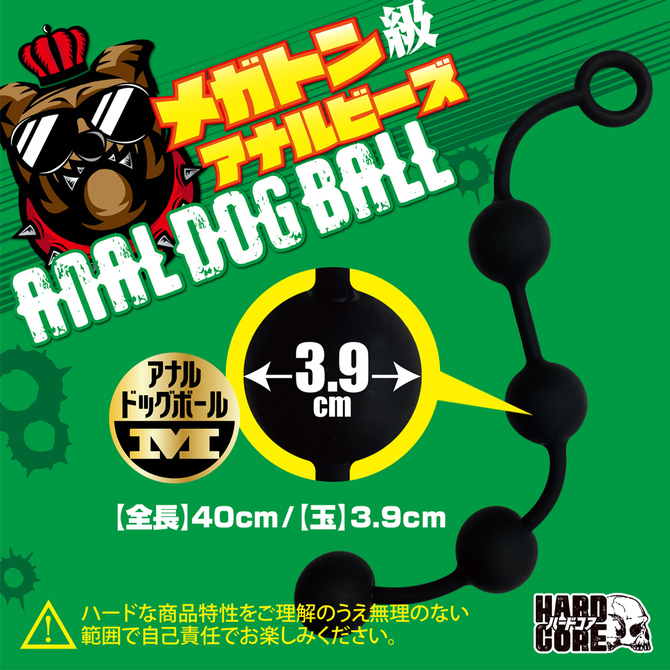 噛みつき注意の猛犬が、エーワンハードコアシリーズに仲間入り ! !じっくり飲み込み一気に引き抜く ! !メガトン級アナルビーズ。玉を1つずつ味わうように飲み込めば、内部が満たされ達成感とエクスタシーで至福を感じられる。飲み込んだ玉を一気に引き抜けば、悶絶絶叫で絶頂へ。Mサイズはアナルプレイをある程度楽しめている中級者サイズ。アナルドッグボールでしか楽しめない、猛烈感を堪能しよう ! !パッケージサイズ(cm):H25.0×W17.7×D3.9本体サイズ(cm):全長40.0/直径3.9重量:本体163g / 総重量170g