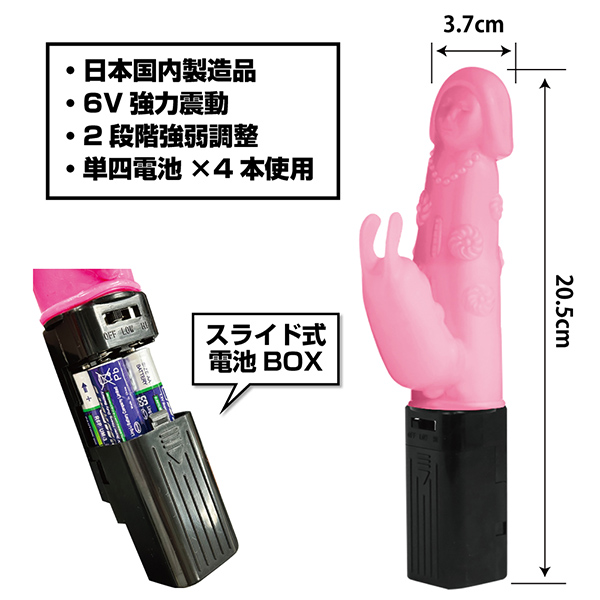 6V強力スイングは千手観音が幾千の手腕で性感帯を責め立てるような・・・まさに神の業!神をも乱れ狂う強力震動淫乱バイブ降臨・・・!!安心安全の日本国内製造品。強弱簡単切替で、煩わしい操作は一切なし!こけし観音の強力スイングが力強く奥をかき乱し、絶頂へと導きます。本体サイズ:全長20.5cm×最大径:3.7cm電池:単3×4本パッケージサイズ:21.5×8.5×4.5cm