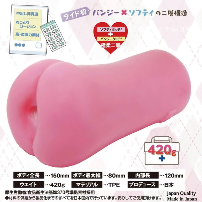 ソフティタッチをバンジータッチで包み込む、次世代ふわ構造誕生!かつてない心地よさで、ふわ感を包み込む。あなたの感覚を超越する絶妙なふんわり感、極柔二層。複雑に入り組んだとろとろ肉内をギザこぶがワインディングすることで性柔ナースの触診が激しくも優しく刺激する極柔二層を堪能してください。柔ギザ柔こぶ、ナースの触診は一度触れたら戻れない・・・RIDEふわとろチームが贈る極上ふわ感のめがねっ娘ナースです。全長:15cm 最大幅:8cm 内部長:12cmパッケージサイズ:H20.5×W13.5×D7.5cm重量:420g