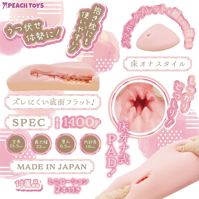 床オナ式PADシリーズ第9弾「床オナ式PAD23(ユカオナシキパッド トゥースリー)」が新登場!PAD23の最大の特徴は、上下で素材が異なる「ツートンカラーの異素材PAD」です!また内部は、今までにない派手で刺激的な内部構造を採用。ヒダをメインとした立体的な突起構造で、前半は三角形状の突起、後半はブロック形状の突起が配置されています。【日本製/非貫通/ローション付】パッケージサイズ:H30×W34×D9cm本体サイズ:H23.5×W22.0×D6.5cm(内部長16.0cm) 重量:1400g