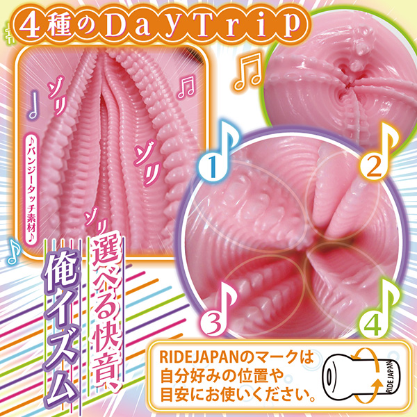 刻むよ!ゾクゾクする刺激奏。超ゾリ感 無限快路、4つの快音で刻む感覚の旅。角度を変えるたびに4つの違うBEATが息づく。ゾリ特化で構成され、刺激を彩る4種DayTrip。ホールボディの[RIDEJAPAN]マークを目安にして自分のお好みポイントを見つけてください。選べる快音俺イズムで絶頂の旋律!パッケージサイズ:H190×W120×D75mm全長:150mm 最大幅:75mm 内部長:120mm 415g【日本製/非貫通/ローション付】