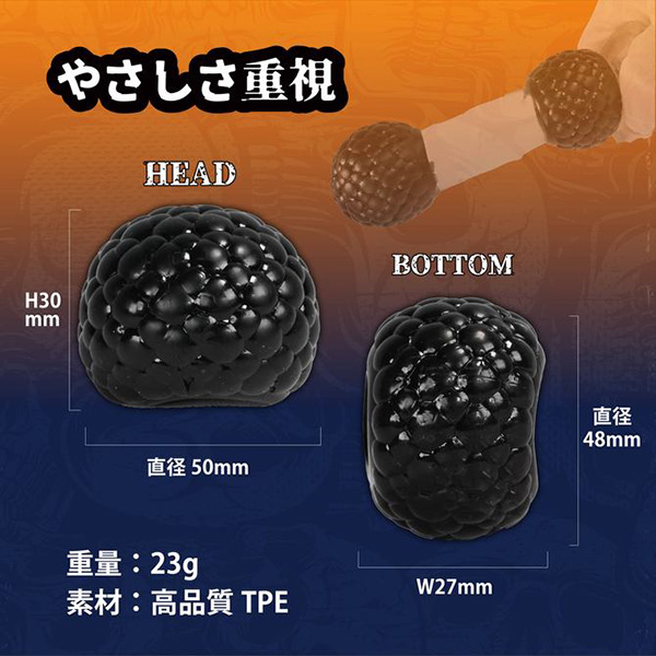 先端と根元、2つに分かれたセパレートサック。刺激したい部分だけ装着して感触と温もりを損なわない2個セットサック。柔らかくてしっかり伸びる高品質素材採用でストレスフリーな付け心地を実現しました。先端だけ装着したり、根元だけ装着したり、好みに合わせて使用方法を選べます。ボコボコ突起のマイルド刺激タイプパッケージサイズ:H10.5+ヘッダー3×W6×D5cmヘッド:H3.5×直径4.5cmボトム:H2.8×直径4.5cm