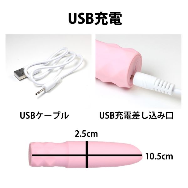 肌に優しいシリコン素材でコーティングされて、他のプラスチックや金属素材製品よりも柔らかく振動を深部へ伝えます。 指位の大きさ小型バイブですが、10種類の強力振動を味わえることができ、先端がリップ形状の斜めカットになっており、敏感部分を狙いやすい!