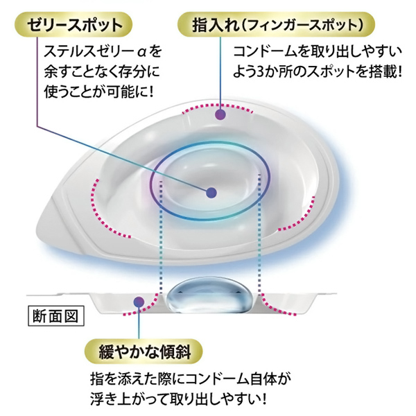 締めつけずスムーズ装着。 ステルスゼリーαのよさを最大限に引き出す独自のブリスター個包装。(特許7508926号)