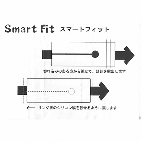 【使用方法】切れ込みのあるほうから被せて、頭部を露出します。リング状のシリコン膜を被せるように戻します。パッケージサイズ:128×80×35mm本体サイズ:65×35φmm(リング部:42φmm) 内径:30φmm