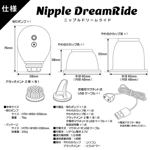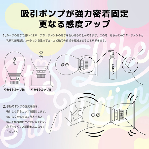 10種類の回転パターンと10段階のスピードで、夢の快感ゾーンにまっしぐら! 新しいアタッチメントもついています。 ポンプで手軽に楽しめる、夢のハンディ乳首ローターが新登場。 バストトップにやさしく吸い付いて、いろいろな回転パターンで、最高のエクスタシーをお届け。 スローモーションのような超低速から、激しい首振り回転まで、自分にぴったりのスピードを楽しめます。 あらゆる乳首を覚醒させる「オールラウンダー」なアイテム。 日本発の世界ブランド【ニップルドーム】シリーズが自信を持ってお届けします。