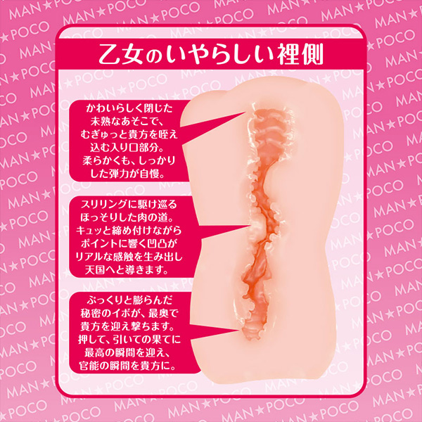 まんぽこりんシリーズから乙女の柔肌の様な触感のホールが新登場!その名も「まんぽこりんプラス」。このまんぽこりんプラスはもっちりとしたプニプニ肌が自慢です。弾力抜群の素材を使用し、健康的な乙女の肌に近づけました。内部構造はキュッと締めて、プリっと弾ける肉ヒダ構造。経験の少ない少女の様な未成熟な感触がお楽しみいただけます♪【非貫通/ローション付】本体サイズ:12.5×6.2×6.5cmパッケージサイズ:H13.6×W7.5×D7.5cm重量:260g