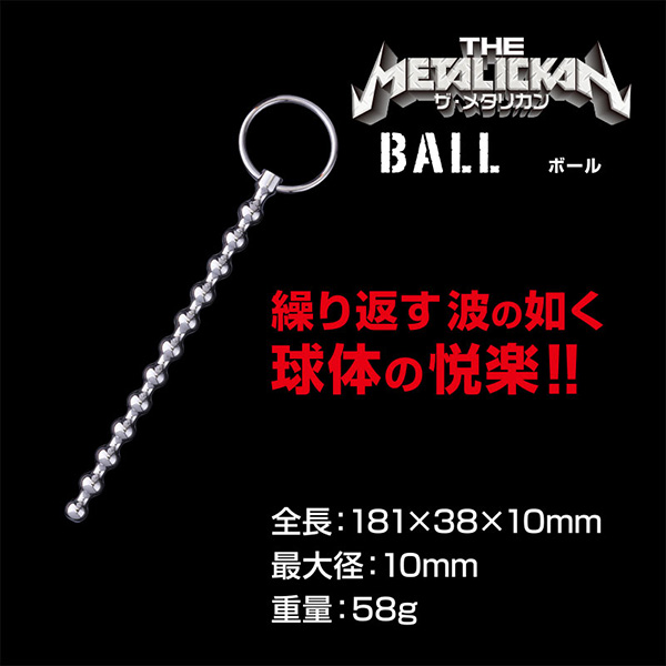 あのメタリカンが帰ってきた!ザ・メタリカン ボールは繰り返す感触が堪能できるモデル。連なったボールが通過するたびに悦びを感じるでしょう。ご使用の際は個人の責任のもと、お遊びください。 本体サイズ:181×38×10mmパッケージサイズ:H181×W42×D12mm