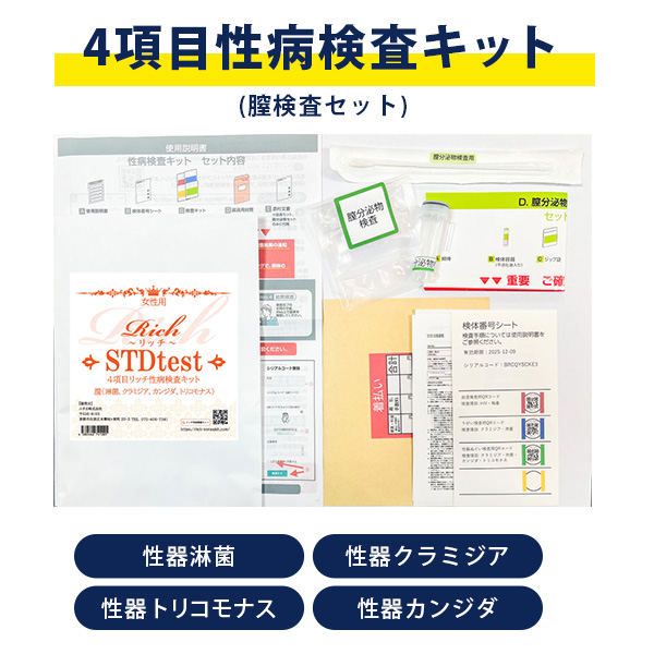 安価ながらも性感染症の中でも感染率の高い4項目を網羅しているキットです。 わかりやすい説明書がセットになっており初めてで不安な方も安心して検査していただけます。