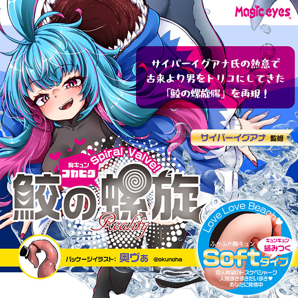 JINGAIグッズのスペシャルリストであるサイバーイグアナが完全監修したコラボホール。おしぼりのようにねじることが出来るサメ娘の7回転の螺旋ヒダを非貫通式バキュームで再現。パッケージのイラストには「奥ヴぁ」先生と特典イラストカードには「Mick」先生を起用し界隈もざわつく豪華な仕様。680gのボリュームがある本体は初心者からマニアまで満足できる実用性にも大変優れたグッズです。本体サイズ:9.2×8.8×17.5cm 重量:680gパッケージサイズ:21.3×17.2×9.2cm【日本製/非貫通/ローション付】