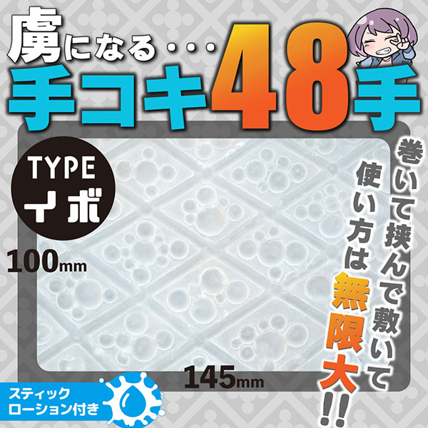 使い方の発想次第で無限の楽しみ方が出来る「おなまっと」に、従来品よりもハッキリとした刺激が楽しめるハードタイプが登場。イボタイプは大小不規則に並んだイボと、それをひし形に区切る筋が特徴の複合構造。イボならではのモコモコとした使用感だけでなく、要所要所で筋が引っかかり快感にアクセントを生み出します。本体サイズ:H10.0×W14.5cmパッケージサイズ:H15.0×W13.5×D1.2cm