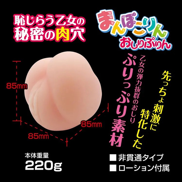 まんぽこりんシリーズから先っちょ刺激に特化したホールが新登場!その名も「まんぽこりんおしりぷりん」です。目指したのは弾力あふれる乙女のおしり!プリップリでムッチムチの肉厚おしりに仕上げました。また本作は先っちょ刺激に特化した構造になっており、気持ちよく包み込む感触が自慢です。緩やかな凹凸が弾力豊かに先っちょを締め付けるでしょう。恥じらう乙女の秘密の肉穴。ぷりんぷりんの乙女のおしりをお楽しみください。本体サイズ:H8.5×W8.5×D8.5cmパッケージサイズ:H9.0×W9.0×D9.0cm