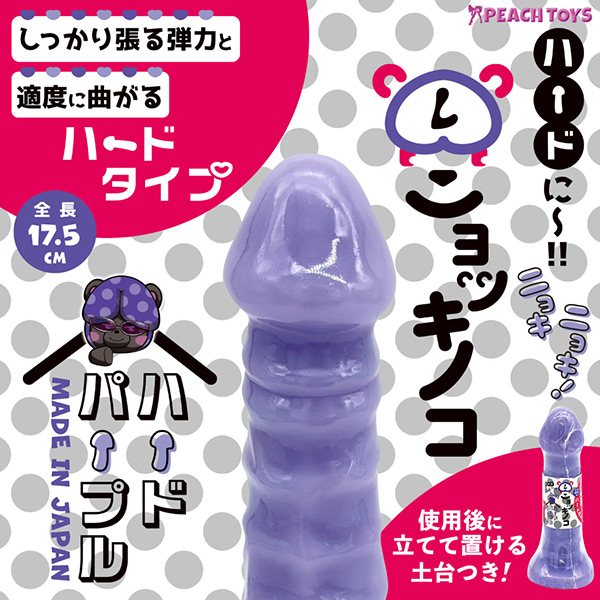 ハードに〜!!ニョキニョキニョッキノコ!!「ニョッキノコ(ハードパープル)」ディルドの登場です☆柔らかくて弾力感たっぷりの「ニョッキノコ(ソフトピンク)」が、ガツンとハードなパープルディルドに大変身!!●硬すぎない素材で張り感MAXのハード素材がいい感じ!!●しっかり張る弾力と適度に曲がるハードタイプ!!●使用後に立てて置ける土台つき!●素材:PVC●MADE IN JAPAN全長:17.5cm 本体直径:約3.2〜4.0cm 最大径:4.2cm