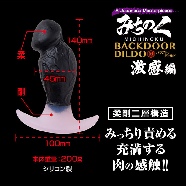 本体はシリコン製の柔剛二層構造。侵入部分(黒色部分)は柔らかく、ストッパー部分は硬くなっています。スムースでリアルな侵入感を実現しつつ、きっちりと止めるところは止めるメリハリある仕様になっています。また品質の高いシリコン素材を使用することで、ベトつきや嫌な匂いを抑えています。また本製品には大人気のぺぺSPバックドア5mLが付属しています。本体サイズ:H14.0×W10.0×D4.8cmパッケージサイズ:H27.0×W15.5×D5.0cm