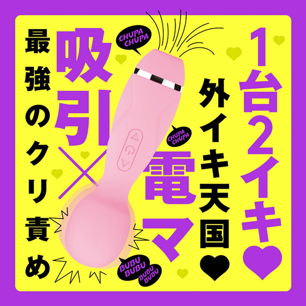 超!愛を感じる吸引電マ1台で2イキ♪ 吸引機能と電マの振動で最強のクリ責め! 肌ざわりのいいサラサラソフトシリコン仕様の電マは 豊富な8パターン振動を搭載! お好みの振動でクリ開発ができちゃいます★ クリを激しく吸い上げる吸引機能は、即イキ必至の極上快感! 震えて!吸われて!外イキ尽くし! よくばりプレイを体験してください…♪ かわいらしいピンクでハートをゲットv