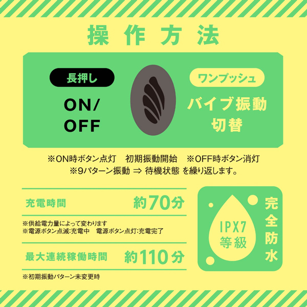 アナニーにおすすめスティックバイブ★ 細型スティックで優しく挿入&フィット責め体験♪ ハトプラより超初心者にオススメなアナニーバイブが登場! 高品質ソフトシリコンでとっても柔らかく肉壁を 波状に密着&擦り責めするプニプニウェーブ! 自在に曲がり挿入に優しい仕様のベンドスティック♪ セルフプレイも簡単で初心者家ら超玄人も即イキ可能っ! 女の子みたいにイケるメス堕ちイキ仕様の優秀バイブ! 9パターン振動 IPX7等級防水 完全防水でお手入れも簡単!本体は充電式なのでエコに使用可能。 ※本体:充電時間約70分 ※本体:最大連続稼働時間約110分(初期振動パターン未変更時)