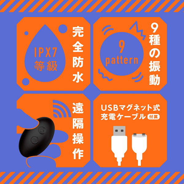 ※本体:充電時間約120分 ※本体:連続稼働時間約70分(初期振動パターン未変更時) 完全防水IPX7等級 5パターンスイング_9パターン振動 付属品:USB充電ケーブル、リモコン 検査番号:2500101