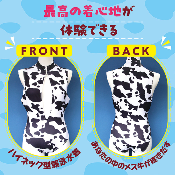 素材も柄も同じなので、「牛柄フロントファスナー競泳水着 おとこの娘用」とセットで着用すれば、本格的な牛柄水着美少女が完成します! 他の商品も活用して、雌牛コスチュームご堪能ください!
