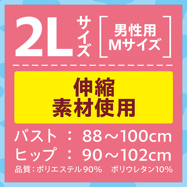 2Lサイズ(男性用Mサイズ)伸縮素材使用 バスト 88〜100cm ヒップ 90〜102cm 素材:ポリエステル90% ポリウレタン10%