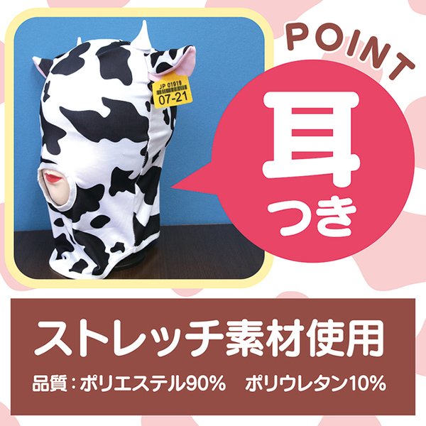 SMプレーでお馴染みの全頭マスク! ですが、普通の全頭マスクではありません。 牛耳付き、牛角付きの雌牛になりきれるカワイイデザインのマスクです。 左耳には乳牛にお馴染みの牛タグ付き! タグに付いている番号は1919(イクイク)0721(オナニー)!