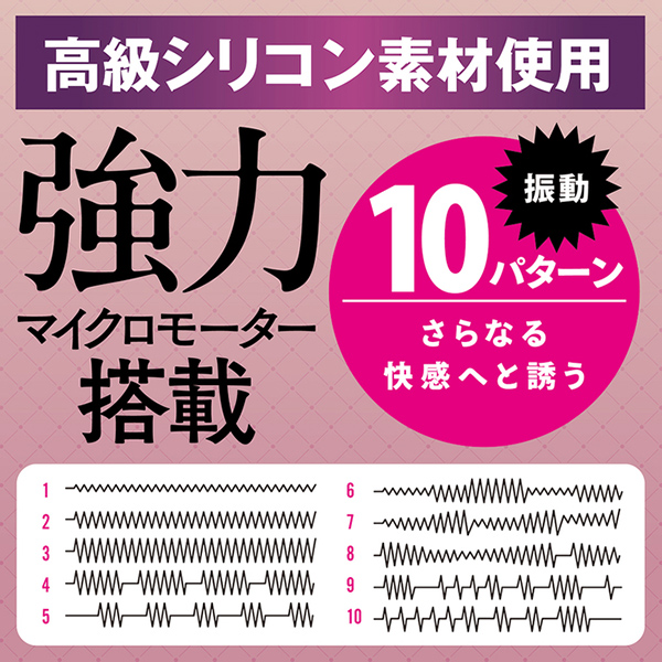 「パワフル極細シリコンプラグ」の振動パターンは10種類。 小刻みの細かな振動から、ダイナミックな刺激まで、 お好みの波長であなたの尿道を刺激します。