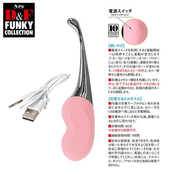 いまや定番となりつつある、人気のピンポイントバイブ最新作!先端からの多彩な振動に加え、抜群の握り心地のボディで快適な操作性また、停止/終了と同時に最後のモードを記憶し、次回再開時に前回最後のモードからはじまるメモリー機能を内蔵しています。■充電時間:90分(充電中は使用不可)■連続使用時間:60分使用後は洗浄可能です◎(ただしバイブ部と握り部の間の水気は、すみやかに拭き取ってください)【付属品】充電ケーブル×11パッケージサイズ: 16.6×4.1×2.7cm総重量:72g商品サイズ: 全長16.1cm