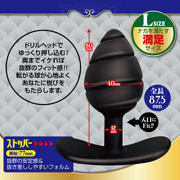 ボールが入ったエネマプラグ。ドリルヘッドをゆっくり押し込み奥までIN。圧迫感とフィット感が心地よく、あなたに悦びをもたらします。揺れるたびに本体内のボールがコロコロ転がり微振動を与え、高揚感へ導きます。シリコン素材でサラサラな使い心地。【Lサイズ】ナカを満たす満足サイズ。パッケージサイズ(cm):H13×W9×D4本体サイズ(cm):全長8.7/横幅7.7本体重量:70g原産国:中国材質:シリコン