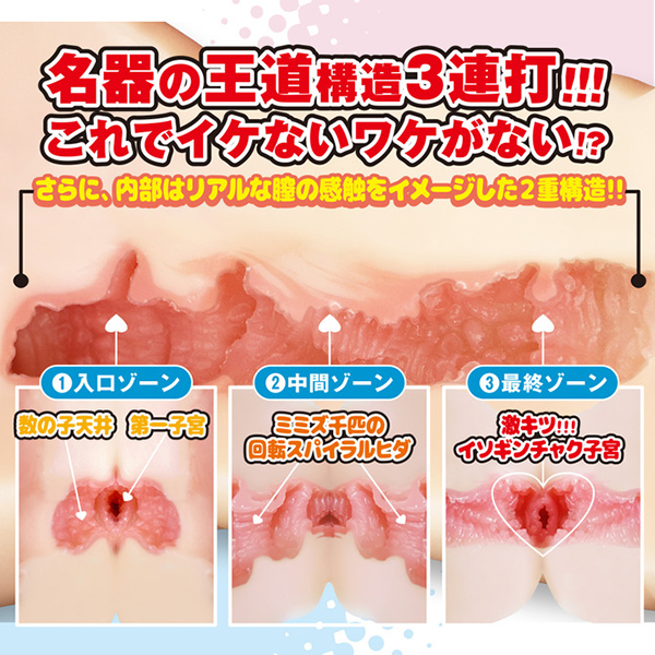 そして内部は・・・・ 前半は名器中の名器である「数の子天上」造形! そして中間は回転する「ミミズ千匹」王道のヒダ! そして最後は「イソギンチャク」名器の子宮ゾーン!