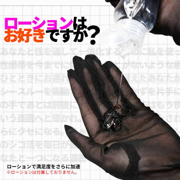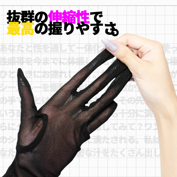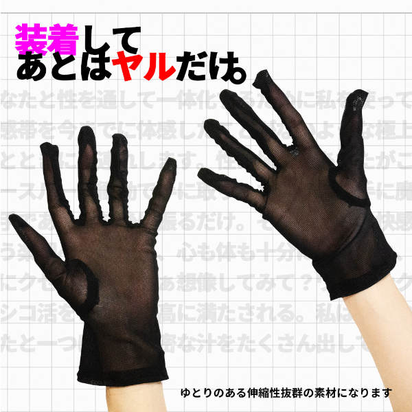視覚と触覚を同時に刺激する、手コキ専用のストッキング手袋。 シースルーの黒い薄布が、肌の色と指の動きをいやらしく透かし、エロティックな手淫を演出します。