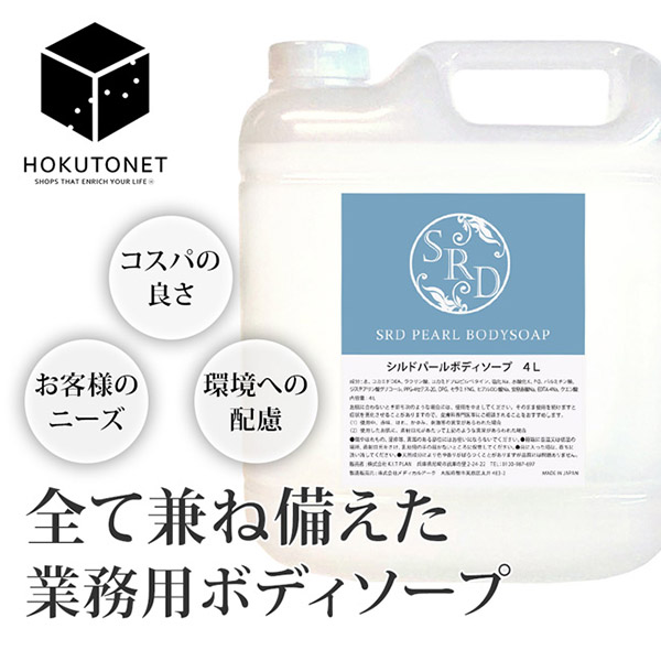 クリーミーな乳白色・無香料の業務用ボディソープ登場! 業務用ですが、保湿成分(セラミド)を配合し、しっとりときめ細かい泡で洗い上げることができる高品質ボディソープです。 たっぷり使える4L! ホテル・スパ・サウナ・エステ・ジムなど、様々な業態のお客様からのリピート多数! 乳白色なので残量がわかりやすい!かつ無香料なので、無香料タイプを希望するデリケートなお客様へもご提供いただけます。 価格は正直利益を度外視しております。多くの方に使っていただくためにご用意したボディソープです。 個人様も、業者様も、ボディソープのまとめ買いや経費節約にいかがでしょうか。