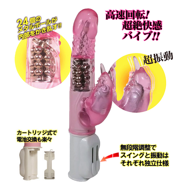24個のメタルボール入りの高速回転電動バイブ!弾力のある素材で挿入感抜群、超強力6Vパワーで高速回転を実現、内壁をガンガン刺激し快感間違いなし!子バイブは定番触角で敏感部分を強烈に刺激!なによりも電池を入れればすぐに使える楽々リモコンBOX。無段階調整スイッチでお好みの速度でお楽しみいただけます。単四電池4本仕様(アルカリ電池推奨)静音タイプパッケージサイズ:H23.6×W7.5×D4cm本体サイズ:H22.5×W6.7×D3.6cm本体重量:220g付属品:単四電池4本