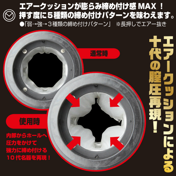 下ボタンで5種類の圧縮モードでリアルな膣圧をコントロール!