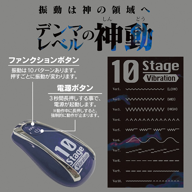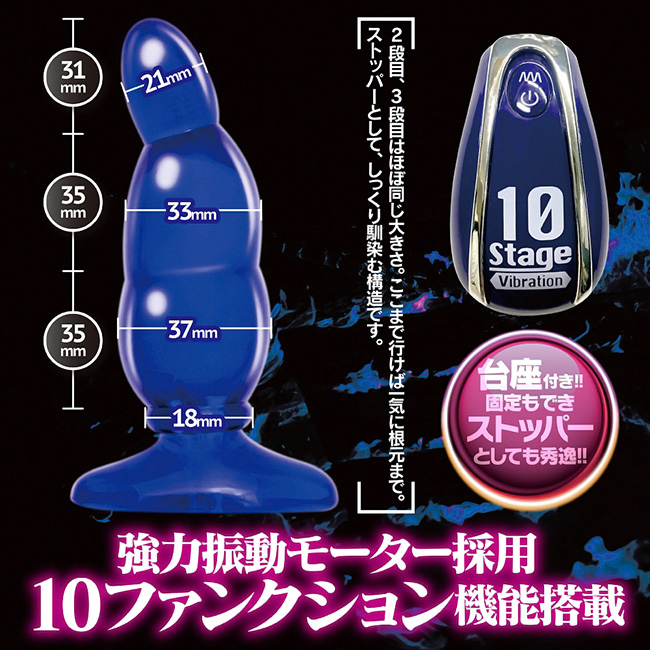 10段階の多彩なファンクションが魅力 もはやアナルバイブの定番になったといっても過言ではない【バックファイアーシリーズ】!そんなバックファイアーシリーズの「バックファイアー ドラフト」を改良して完成したのが「バックファイアードラフト10」となっています。前回のバックファイアー ドラフトでは振動パターンは4種類でしたが、今回は多彩な10種類もの振動を楽しむことができます。デンマレベルの強力振動ローターを搭載した本体の素材は柔らかく滑らかな肌触りが特徴となっており、スムーズな挿入感を実現。本体底部には台座が付いていて、安定した挿入をサポートしてくれます。形状は、3段階で太くなる形状となっていて、最大径は3.7cmとアナル上級者でも満足いただけるサイズとなっています。神の振動「神動」を是非体感ください!