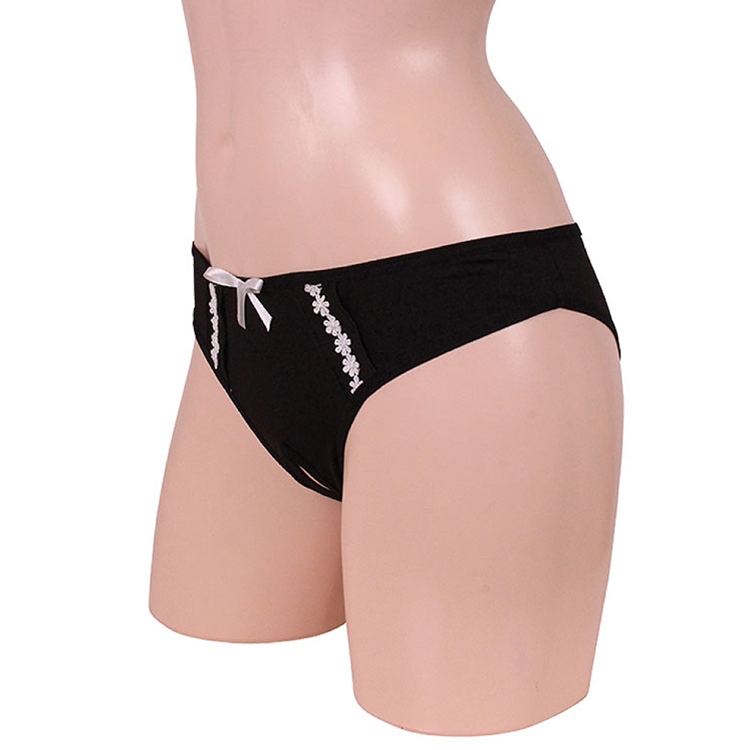 ブラック生地とフロントデザインが可愛いこちらのショーツはフルバック仕様でピュアさ溢れるデザインですが、クロッチ部分を大胆にもオープン仕様にすることでエロさアップなショーツに早変わり♪ちょっぴりセクシーさも出したい時におすすめのショーツになっています。