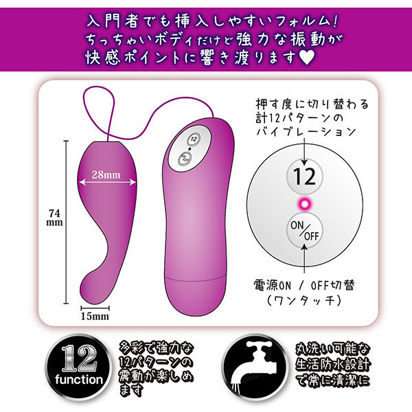 中イキ派垂涎のシリコンローター!絶妙な角度で快感スポットをピンポイントで直撃!滑らかなシリコンボディで全部ずっぽり挿入可能!ぷっくり膨らんだ先端がGスポットにアプローチ♪本体サイズ:7.4×Φ2.8cm電池:単4×2パッケージサイズ:13.0×9.3×4.7cm