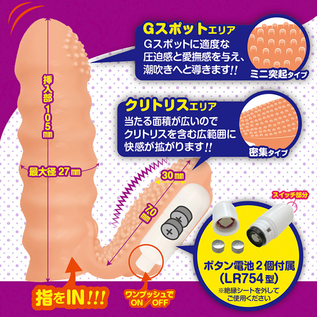 Gスポット&クリトリス同時ダブル責めの悶絶サック!指に装着するだけで摩擦&振動のあなたの手マンプレイがスマートに。