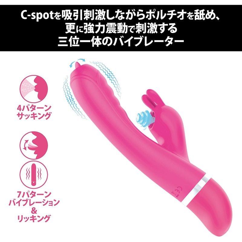 C-spotを吸引刺激しながらポルチオを舐め、更に強力震動で刺激する三位一体のバイブレーター!先端の舌がペロペロとポルチオを舐めながら、 高性能モーターによる強力震動で快感刺激を与える。唇に包まれながらチュパチュパと小刻みに吸い付く優しい刺激。●4パターンサッキング●7パターン振動+リッキング●高品質シリコン●高性能モーター搭載パッケージサイズ:21.0×8.0×4.0cm本体サイズ:20.2×3.8cm総重量:202g