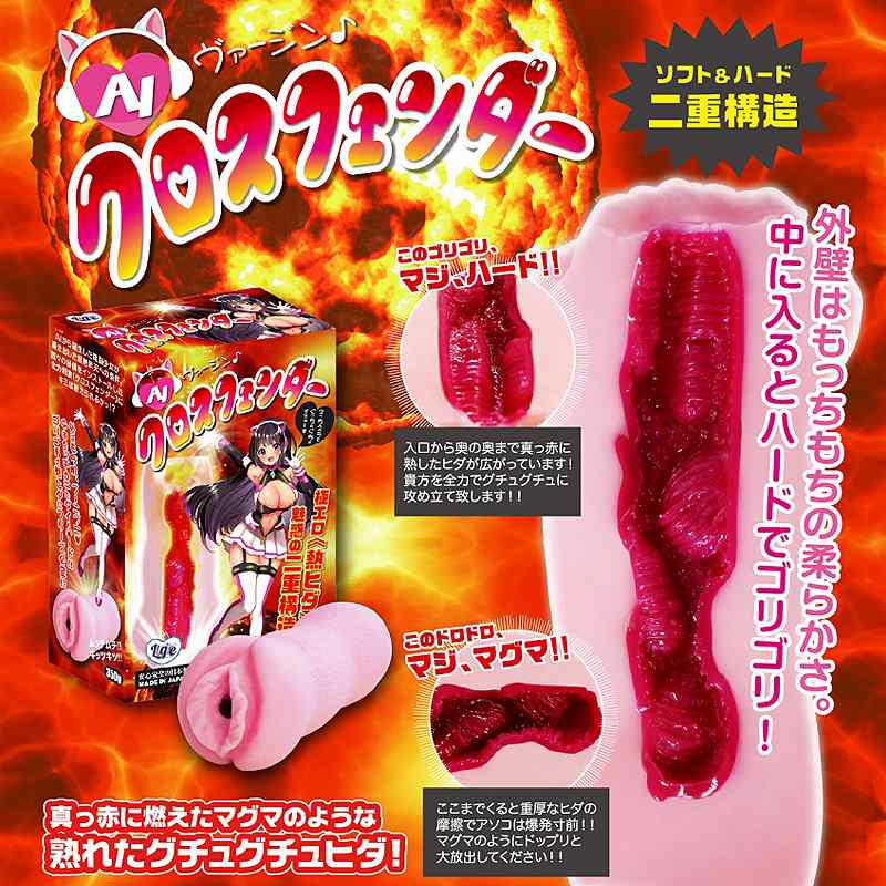 燃えるように熱い内部造形「AIヴァージン クロスフェンダー」の登場です。外壁はもっちもちの柔らかさ。中に入るとハードでゴリゴリ!真っ赤に燃えたマグマのような熟れたグチュグチュヒダ!分厚く特大のハードヒダが特徴です。本体:H7.5×W7×D14.5cm