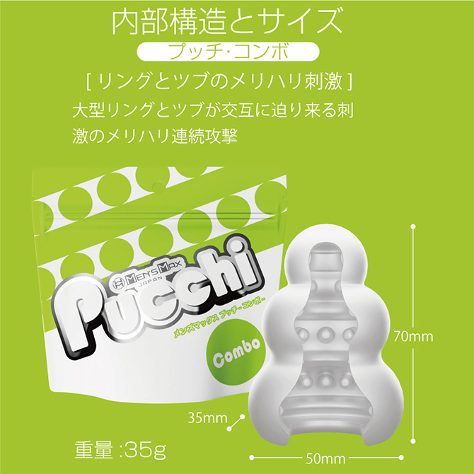 ローションいらずのオナホール!プラスウェッチは独特開発の新素材。なんと水だけでねっとり潤う魔法のようなオナホール。水をつけて軽く擦ることで、内部に超ミクロサイズで閉じ込められた「潤いゼリー」が水に反応し、沁みだし、樹脂表面をねっとりと潤い包み込みます。12種類ありますので、好みの感触を探してみて♪「Combo(コンボ)」は大型のリングと粒が連続するメリハリのある刺激。パッケージサイズ:14×12.8.×5.5cm重量:34g本体サイズ:7×5cm