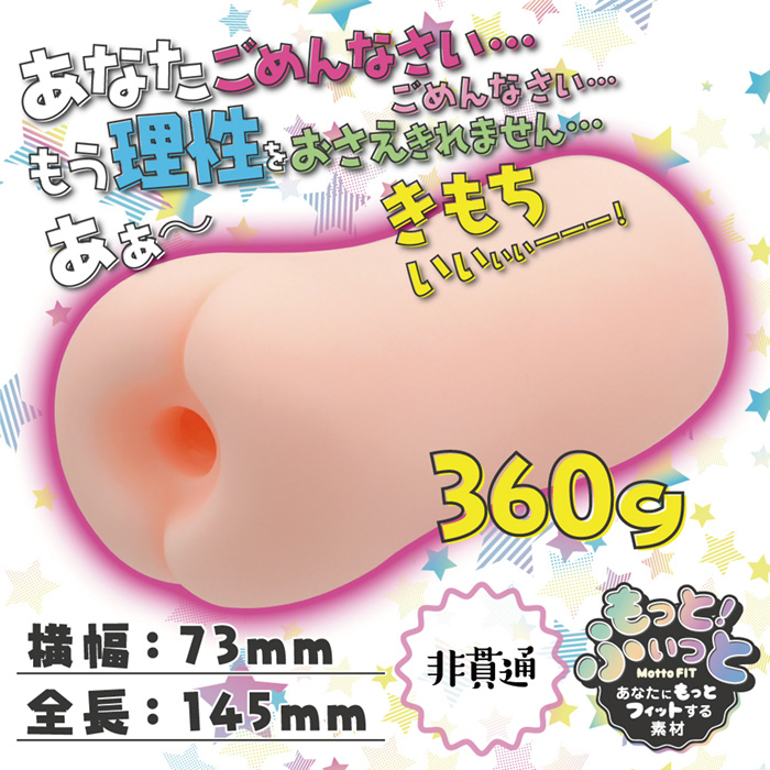 すれ違う度に言い寄ってくる隣の奥さんにもう我慢ならん!うねうね絡みつく肉ヒダパイプを抜けると、不規則なゾリゾリヒダに擦られ悶絶!仕上げには一番奥のザラザラ肉ヒダが先端をグリグリ刺激して発射を促します。360gの本体はその肉厚でググっと締め付け、密着度も包容感もたっぷりです。適度な弾力と密着感の独自素材「もっとふぃっと」を採用しています。全長:14.5cm 最大幅 7.3cm パッケージサイズ:H180×W110×D70mm重量:360g