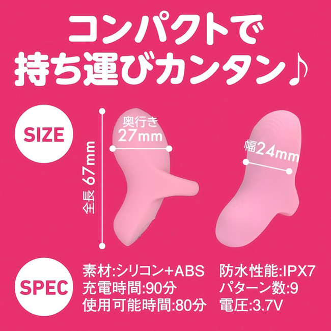 触れたらブルブル振動するタッチセンサー搭載のシリコンフィンガーローターです。 指に装着して電源ONにすれば触れるたびに振動して離れると停止するので無駄な振動が無い直感的な使用が可能です。 衛生的で臭いカットのシリコンボディの滑らかで上質な触り心地で色んな部位を刺激出来ます。 また、2個装着すれば挟んで刺激も楽しめます。 防水等級IPX7の完全防水だから水に濡れても安心。 しっかり洗えて衛生的です。 90分の充電で最大80分使用可能(※使用環境により大幅に増減します) リチウムイオンバッテリー搭載。 触れる度に変化する9パターンの振動を楽しめます。