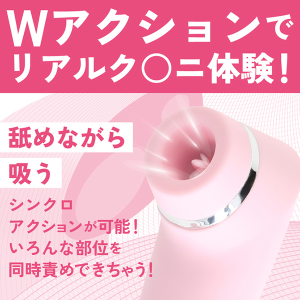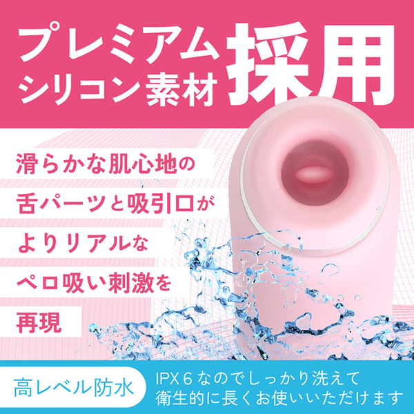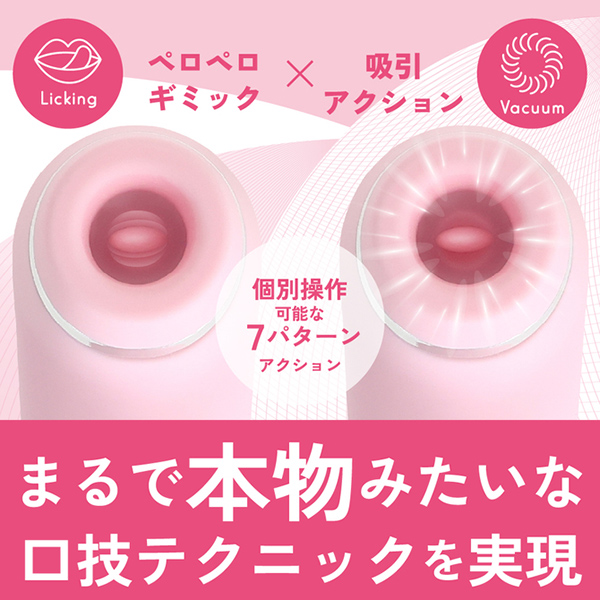 肌触りの良い滑らかな高品質シリコン素材の吸引口と柔らかい舌パーツの舐めるギミックと高性能な静音モーターによる真空吸引アクションのW刺激でリアルなクンニ体験を再現しました。